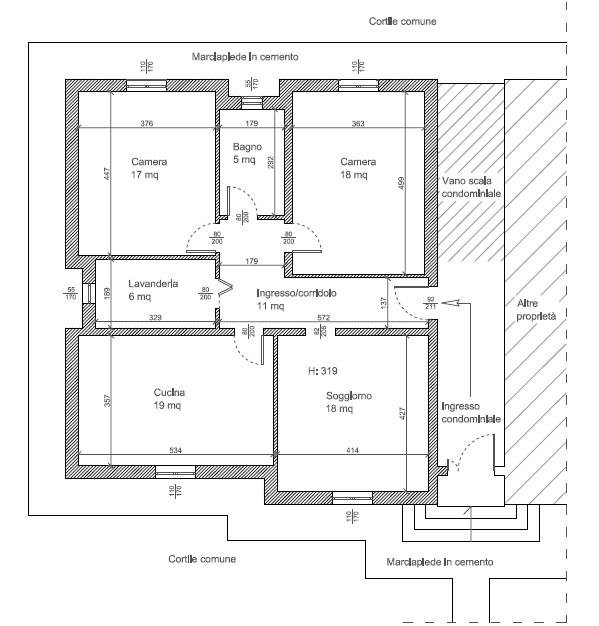 Piena proprietà di appartamento al piano rialzato con cantina al piano seminterrato ed appezzamento di terreno pertinenziale ad uso orto, oltre alla QUOTA di comproprietà indivisa pari a 1/6 (UN SESTO) di area cortilizia in Comune di Vigolzone (Pc), via Roma n. 38.