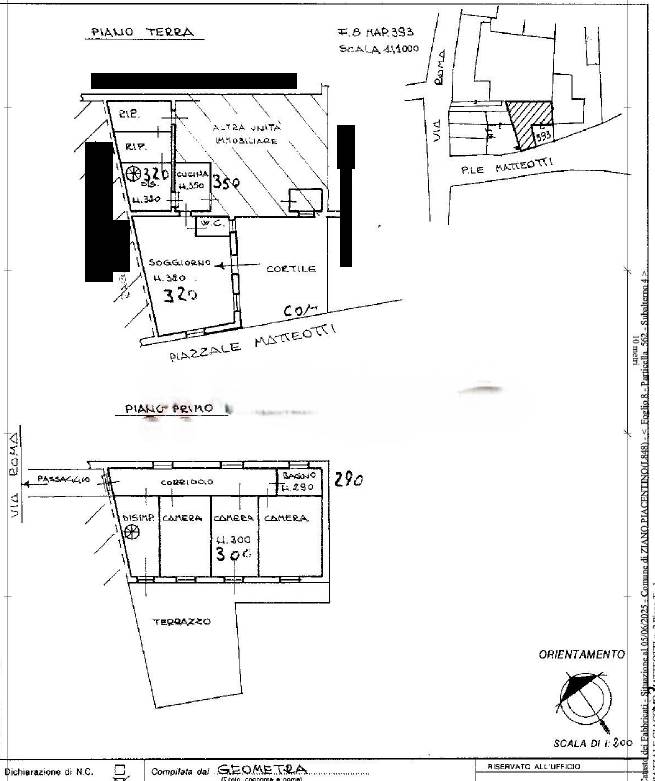 Piena proprietà di casa indipendente su due livelli con autorimessa posta al piano terra in Ziano Piacentino (Pc), Piazzale Matteotti n. 2.